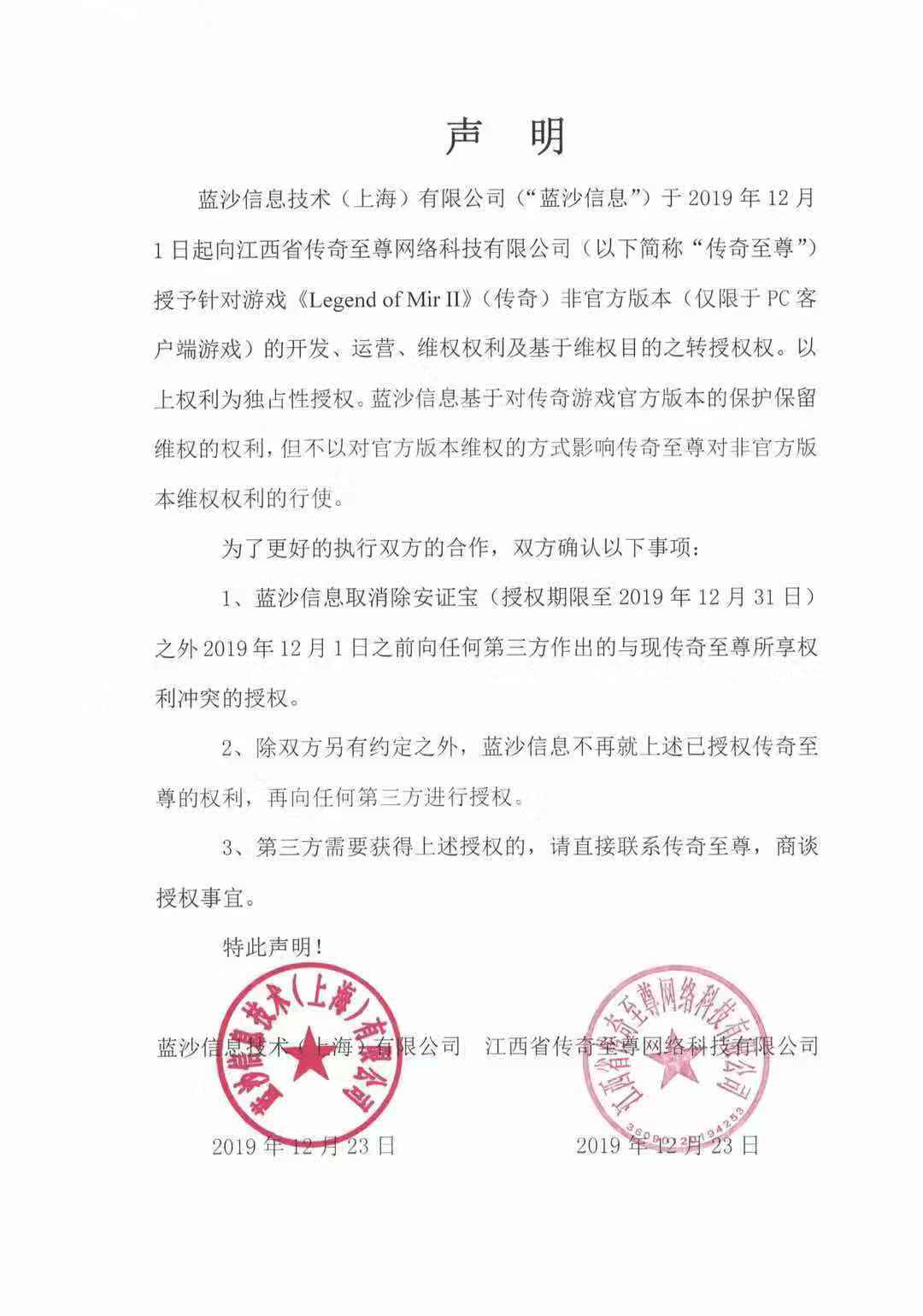 传奇至尊与世纪华通达成框架协议,定鼎传奇版权大一统格局