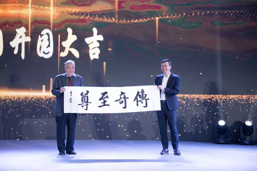 图为第十届全国政协副主席李蒙(左)为产业园题词
